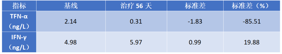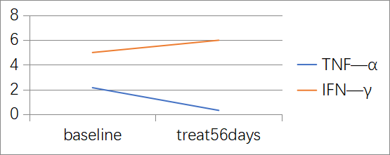 用药后TNF-α下降明显,IFN-γ呈上升趋势,详见图2。