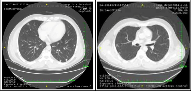 2014年2月11日复查,发现双肺多发转移瘤增多增大,明确为疾病进展。
