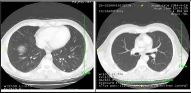 2. 肺部病灶治疗前后核磁对比: