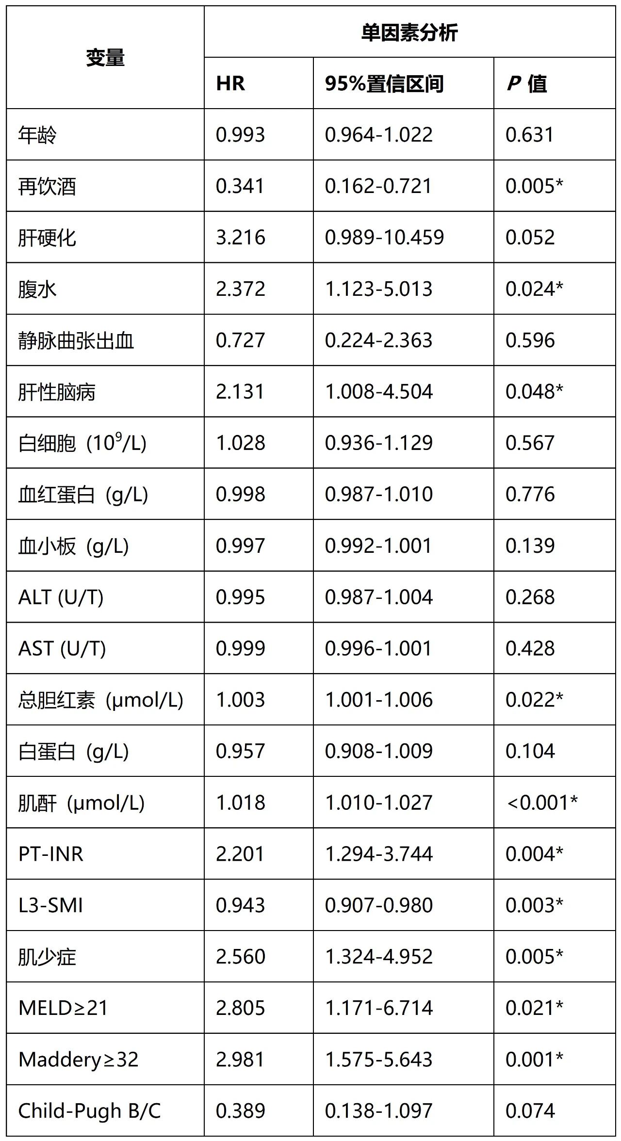 以L3-SMI定义的肌少症是中国大陆酒精性肝病患者生存的独立预测因素