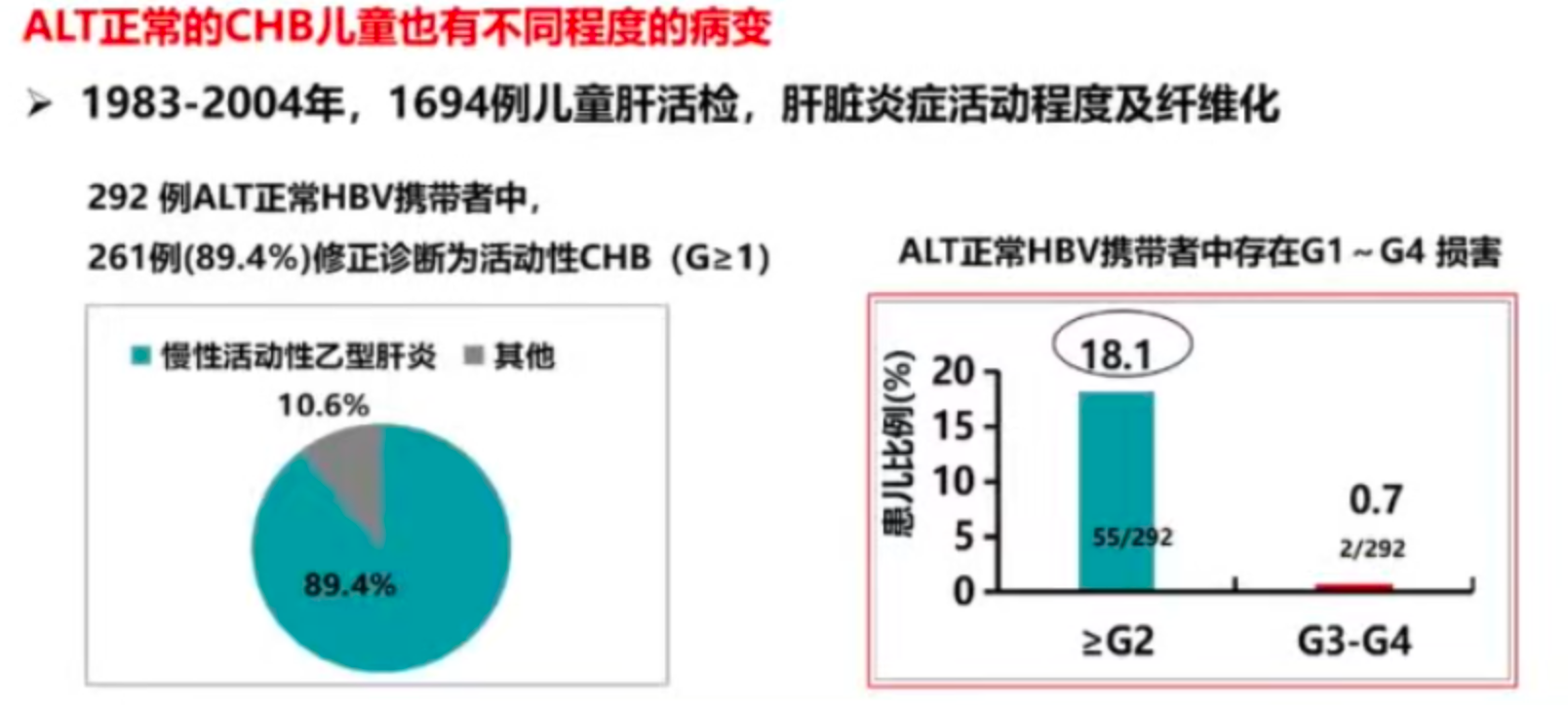 图1. ALT正常的CHB儿童也有不同程度病变(引自讲者幻灯)