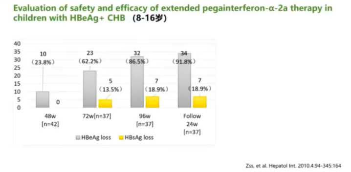 图2. 1~7岁HBeAg(+)儿童抗病毒治疗HBsAg清除率(引自讲者幻灯)