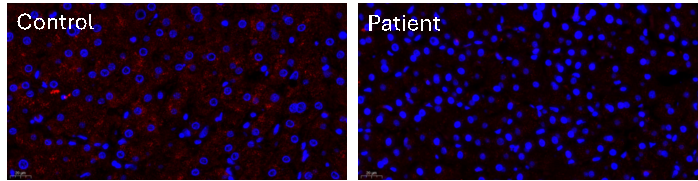 朱传龙教授团队进一步对患者的肝穿组织进行荧光染色,发现NTCP表达显著降低(图3)。高胆汁酸血症对肝细胞有持续毒性,长期胆汁酸增加可引起肝功能异常。最终该患者被诊断为NTCP缺陷引起的高胆汁酸血症。