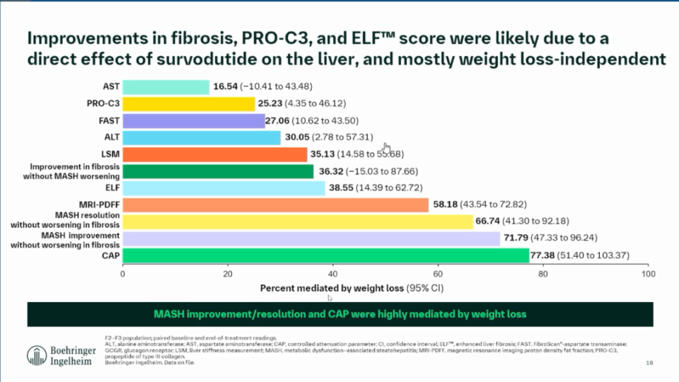 3.Mazen Noureddin, et al. Direct effects of survodutide on liver endpoints beyond weight loss: insights from a phase 2 trial of the glucagon receptor/glucagon-like peptide-1 receptor dual agonist survodutide in people with metabolic dysfunction-associated steatohepatitis and fibrosis. EASL 2025 Presentation ID: OS-098
