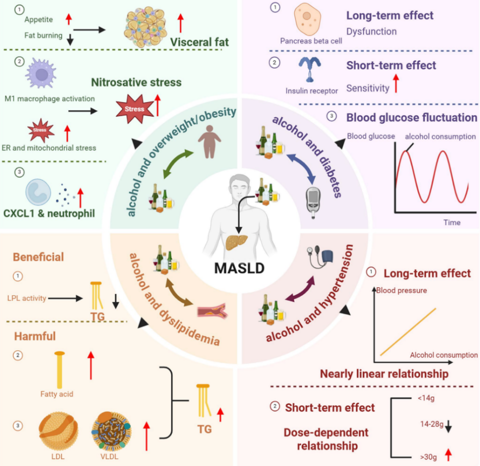 图1. MASLD饮酒和代谢的致病机制