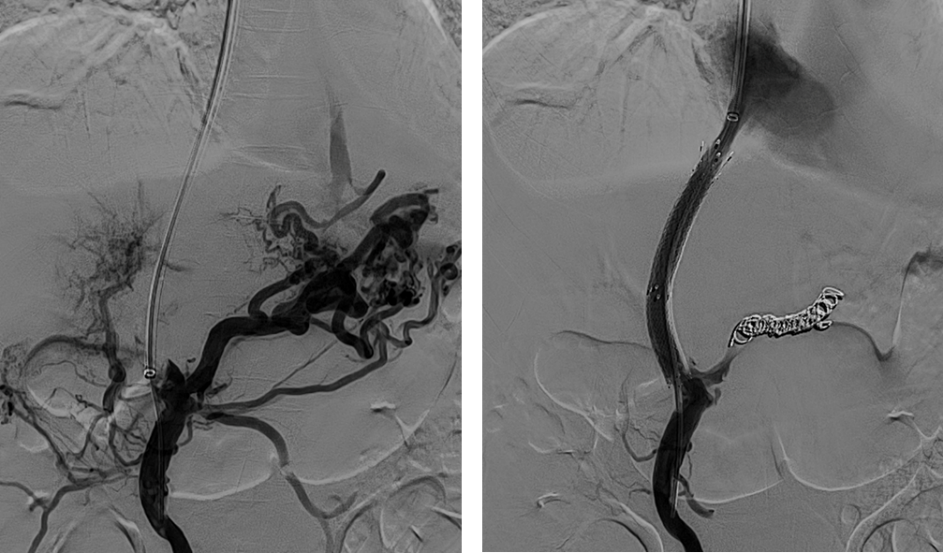 图3. TIPS治疗阻塞性PVT伴静脉曲张出血病例展示