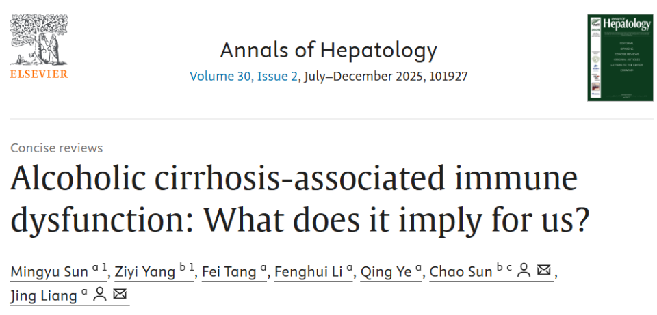 原文链接:Sun M, Yang Z, Tang F, et al. Alcoholic cirrhosis-associated immune dysfunction: What does it imply for us?. Ann Hepatol. Published online May 14, 2025. doi:10.1016/j.aohep.2025.101927