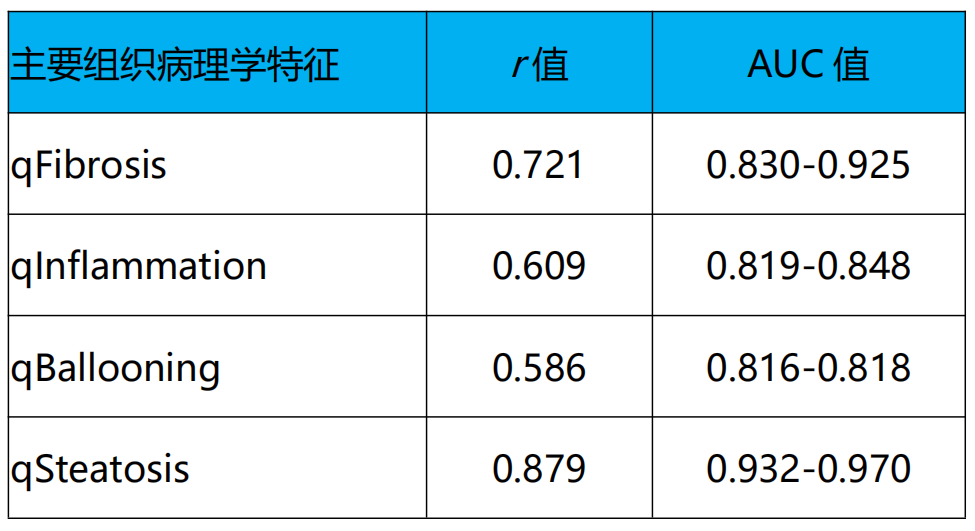 表:qFIBS结果与NASH CRN评分相关性分析
