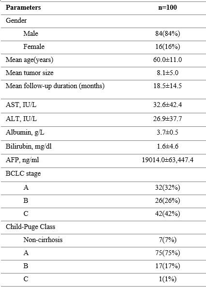 该研究共纳入100例接受TACE治疗的HBV相关HCC患者(84%为男性,平均年龄为60岁)。根据基线时miR-122水平的表达,将患者分为2组,中位临界值为4.3 log10 copies。结果显示,miR-122的低水平表达与肿瘤分期较晚密切相关。