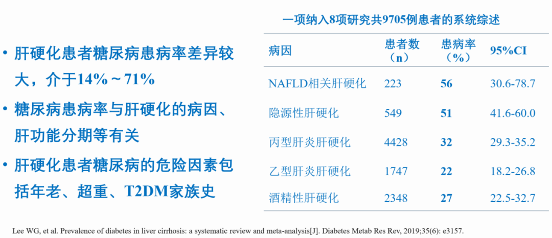 1. Lee WG, et al. Prevalence of diabetes in liver cirrhosis: a systematic review and meta?analysis[J]. Diabetes Metab Res Rev, 2019;35(6): e3157.