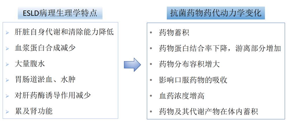 图1. 抗菌药物在ESLD中的药代动力学变化