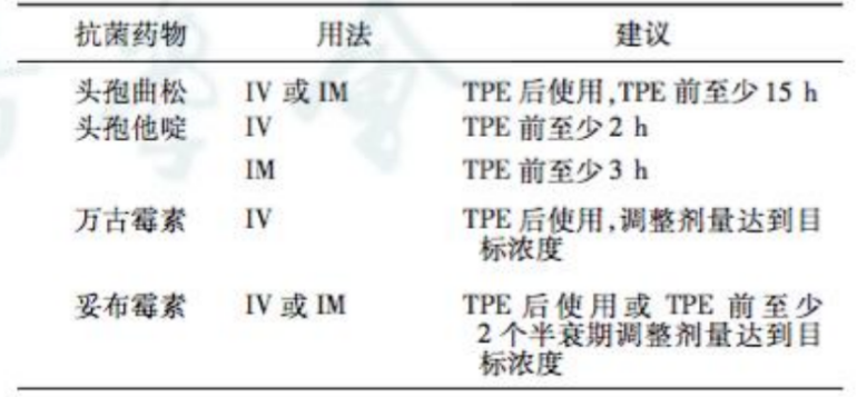 表5. TPE时对高蛋白结合率抗菌药物用药建议