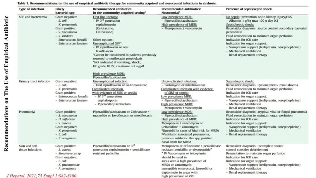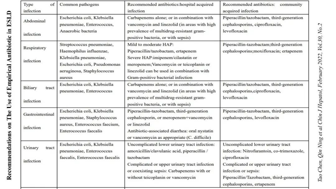 图13. 终末期肝病合并感染的抗生素使用示意图