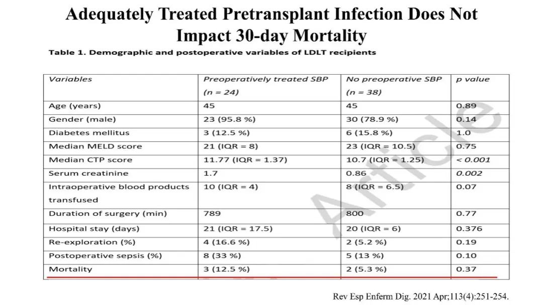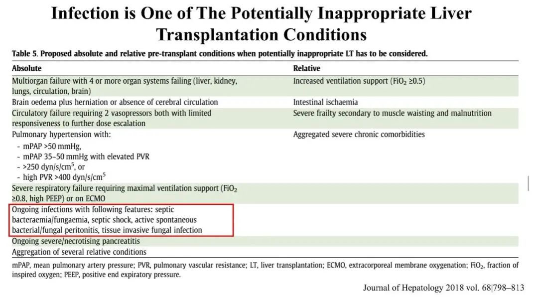 图14. 持续感染是肝移植手术的绝对禁忌证