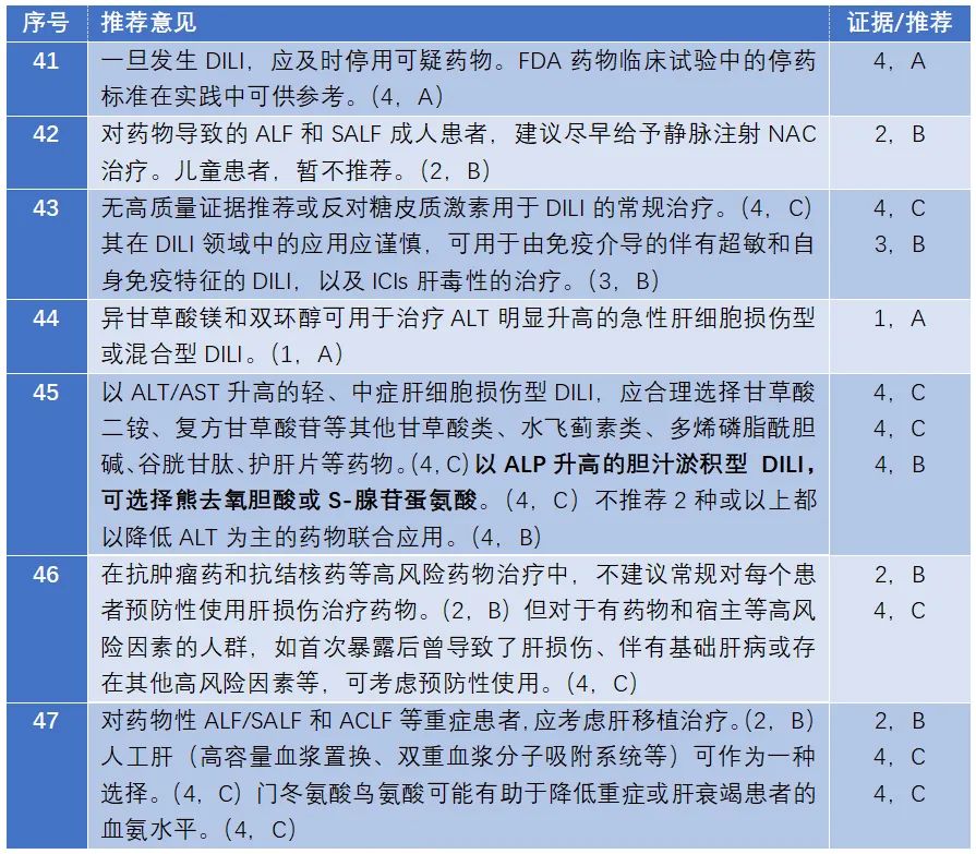 图1. 新版指南关于DILI治疗的推荐意见(41-47)