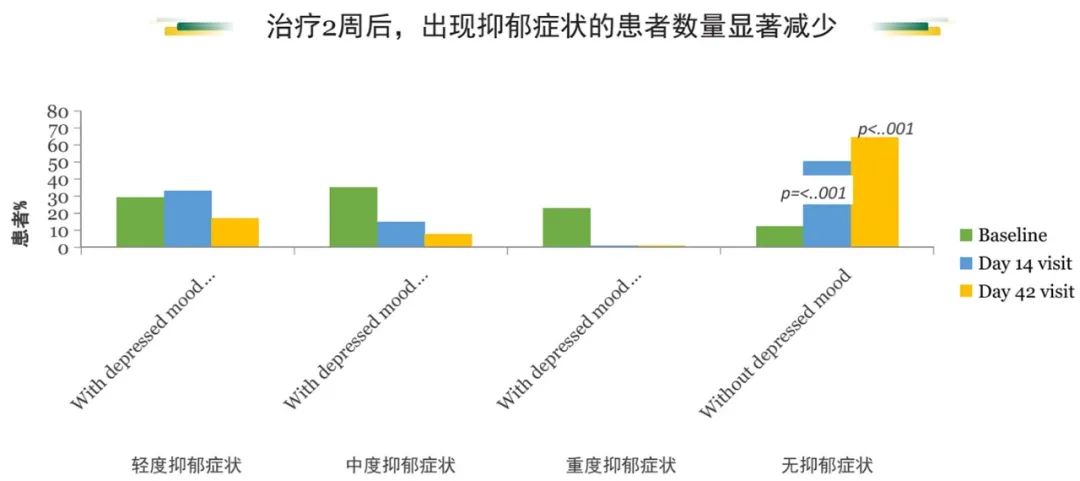 结果显示,SAMe治疗2周后,受试者的肝酶和胆酶(胆红素、ALP、GGT、ALT和AST)水平显著降低(P<0.05);IHC的症状,如瘙痒、疲劳和黄疸明显改善;而且,出现抑郁症状的患者数量显著减少(P<0.001),详见图2。