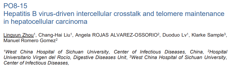 近日,四川大学华西医院感染性疾病中心周凌云副教授、刘昌海助理研究员、吕朵朵助理研究员团队,联合西班牙塞维利亚大学医院肝脏疾病研究中心Manuel Romero-Gómez教授团队在2024年欧洲肝病学会肝癌峰会(EASL Liver Cancer Summit 2024)分享了一项最新研究(HBV-Driven Intercellular Crosstalk and Telomere Maintenance in HCC):揭示了乙型肝炎病毒(HBV)介导的肝细胞-星状细胞间复杂的通讯模式,即由HBV介导的NAMPT-INSR途径在肝纤维化和肝癌的进展过程中起到关键作用(摘要编号:PO8-15)。这一发现为HBV相关的肝纤维化和肝癌提供了新的治疗策略。