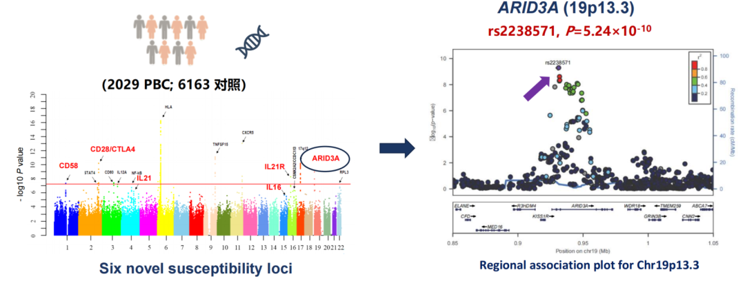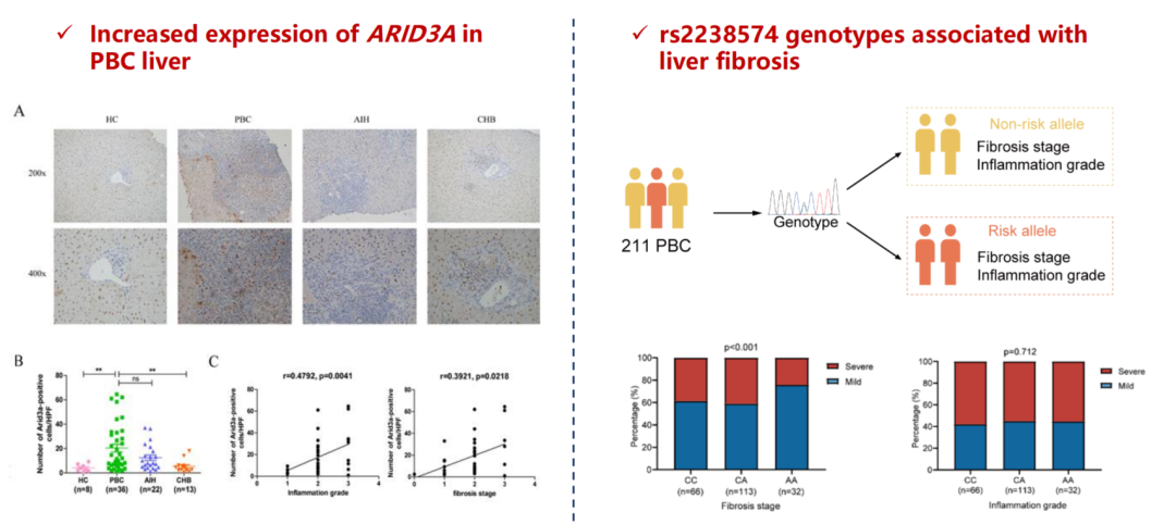 马雄/唐茹琦教授团队开展系列研究,鉴定PBC新的易感基因,解析了ARID3A区域的关键风险位点及其调控机制,探索了ARID3A在PBC发病中的作用机制,未来将尝试将遗传学研究成果应用于临床实践。