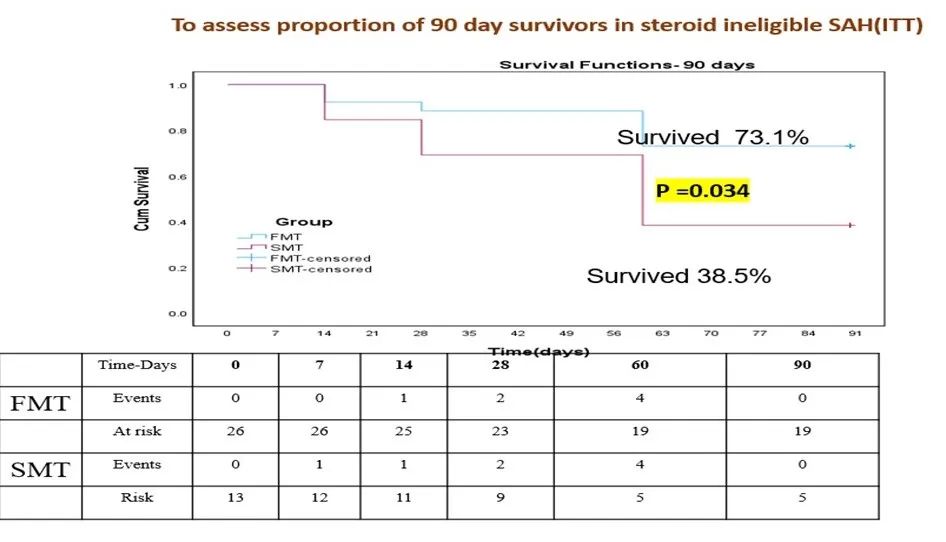 图2. FMT组与标准治疗组SAH患者90天无移植生存率