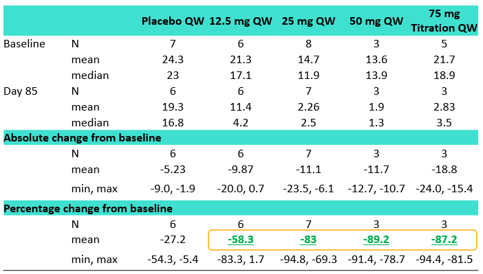表1. 基线>8%的受试者在接受12周治疗后LFC的变化(通过MRI-PDFF评估)