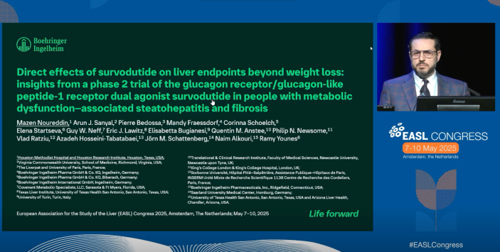 3.Mazen Noureddin, et al. Direct effects of survodutide on liver endpoints beyond weight loss: insights from a phase 2 trial of the glucagon receptor/glucagon-like peptide-1 receptor dual agonist survodutide in people with metabolic dysfunction-associated steatohepatitis and fibrosis. EASL 2025 Presentation ID: OS-098