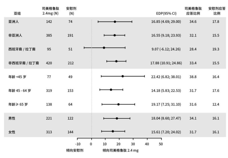 图6. 司美格鲁肽治疗应答的亚组分析:MASH缓解且肝脏纤维化改善
