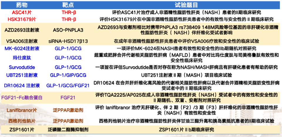 表1. 截至2025年中国脂肪性肝病临床试验(Ⅱ期和Ⅲ期)