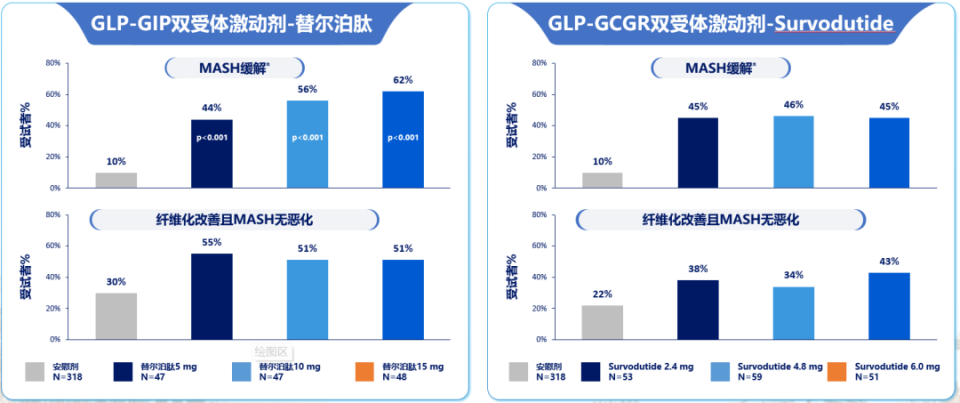 图7. GLP-1双受体激动剂替尔泊肽和Survodutide 52周Ⅱb期研究结果(ITT人群)