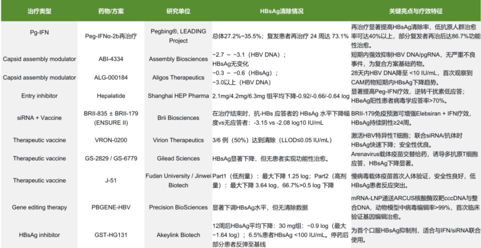 3.VRON-0200联合治疗:该治疗性疫苗单药或与Tobevibart+Elebsiran联用,可诱导HBsAg显著下降,部分患者实现HBsAg<5 IU/mL,且疗效持续至360天。