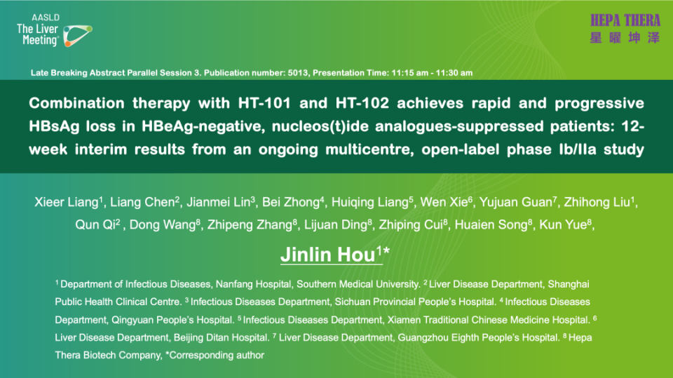 HT-101联合HT-102:快速深度降低HBsAg的Ib/IIa期研究